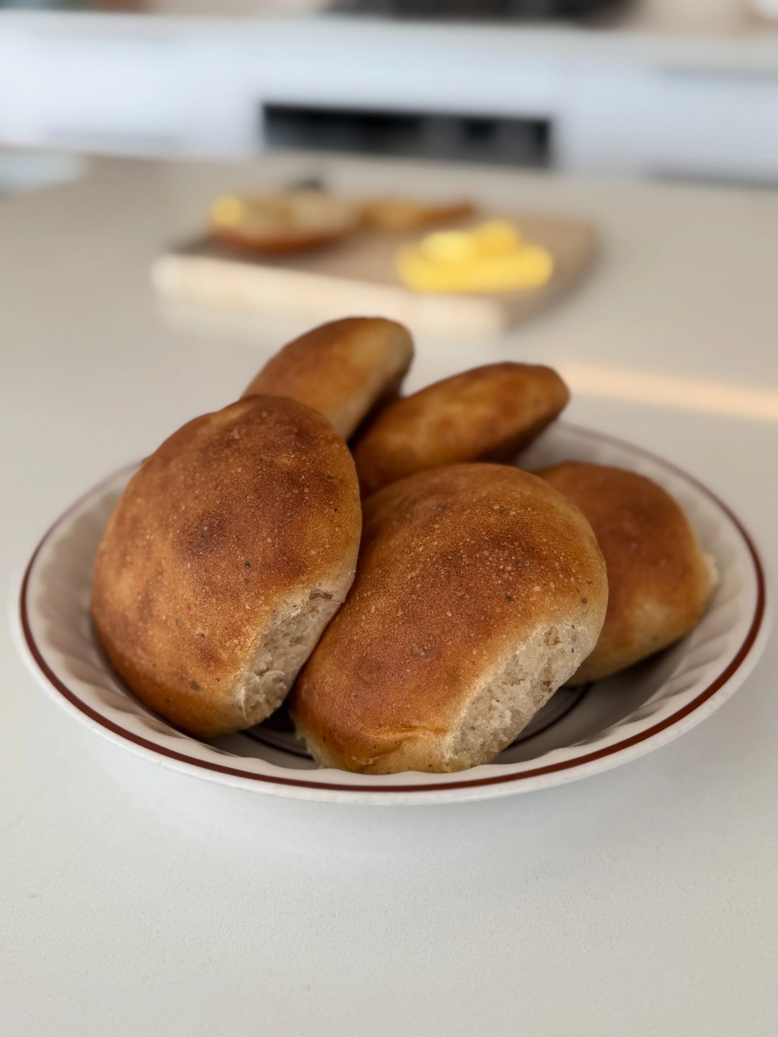 10 g active dried yeastInstructions:In a small saucepan, combine the butter, milk, water and honey. Place the saucepan over a low heat and warm the mixture for one minute, stirring occasionally. You don’t want this to come to a simmer, you only want to take the chill out of the milk and melt the butter.Add the all purpose flour, whole wheat flour, dried horopito, sea salt and dried yeast into the bowl of a stand mixer.Pour the warmed milk mixture into the bowl. Stir together and then leave undisturbed for two minutes to allow the yeast to activate - it should become bubbly and spongy.Place the bowl onto the stand mixer and attach a dough hook. Knead the dough for five minutes on a medium speed.While the dough is kneading, set your oven onto 100c (212f), or 85c (185f) if using a convection oven. Heat your oven for five minutes then turn it off.Take the dough off the stand mixer and cover the bowl with a clean damp tea towel. Place the bowl into the oven and leave it to proof for one hour.Lightly grease two baking trays and set aside.Clean a large section of the kitchen countertop to work on. Transfer the dough onto the countertop and cut it into 85g to 90g portions. Shape the dough into buns and place them onto the baking trays. Evenly space the buns to allow plenty of room for them to double in size.Cover the buns with clean damp tea towels and place back into the oven. Set the oven to 100c (212f), or 85c (185f) if using a convection oven. Heat the oven for five minutes on this setting then turn it off.Leave the buns to rise for 45 minutes in the oven.Once the buns have risen, take the trays out of the oven, remove the tea towels and set the buns aside on the bench while you preheat the oven.Preheat the oven to 200c (390f), or 180c (350f) if using a convection oven.Put the buns in the oven and bake for 10 to 12 minutes until golden brown. Rotate the trays in the oven halfway through baking.Take the buns out of the oven and let them rest at room temperature for 10 minutes before digging in. Recipe notes: This recipe uses dried horopito flakes but you can substitute with any dried herbs of your choosing.
